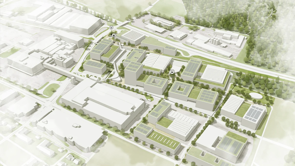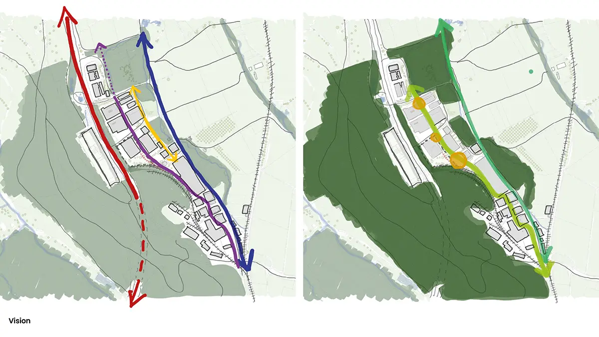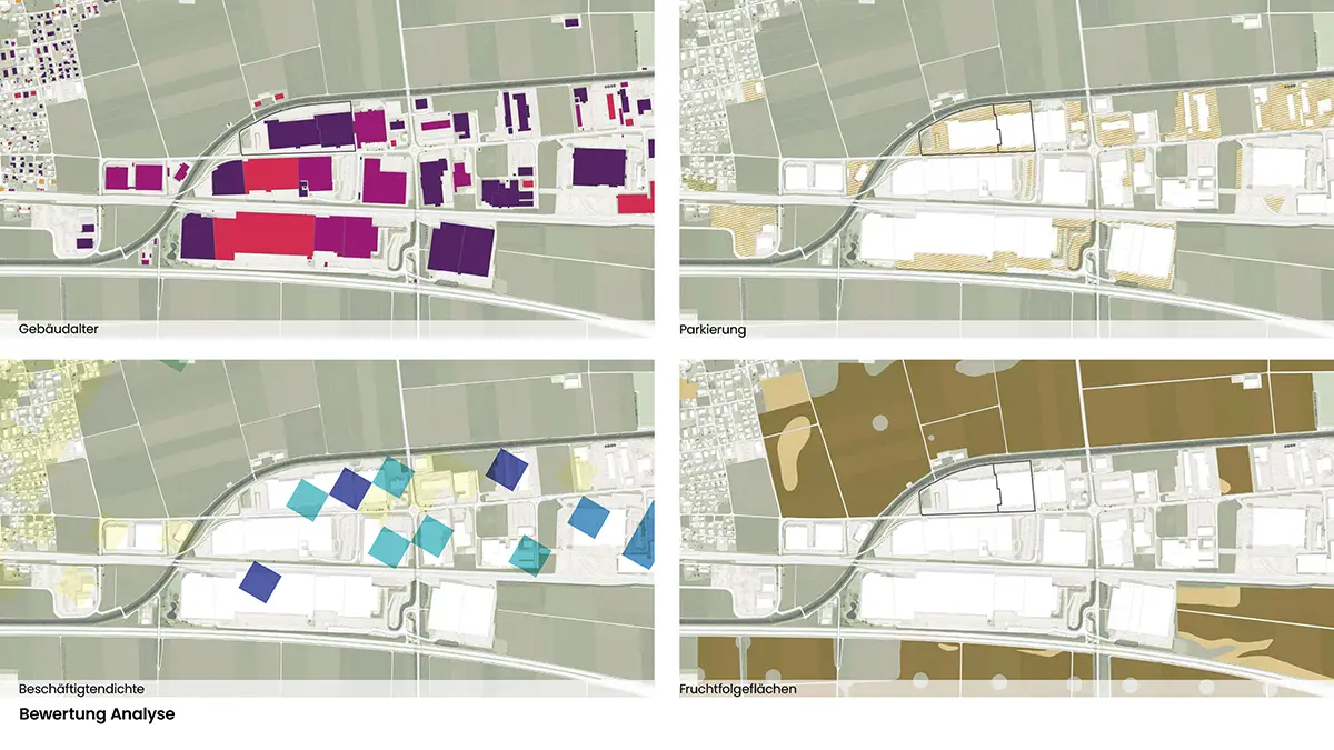 Vision Innovative städtebauliche, freiräumliche und verkehrstechnische Vision für Gewerbegebiet mit Fokus auf Industrie 4.0. Aufwertung des gesamten Gebiets durch ein identitätsstiftendes frei- und sozialräumliches Gerüst sowie durch eine effiziente und sichere Verkehrserschliessung für alle Verkehrsteilnehmer