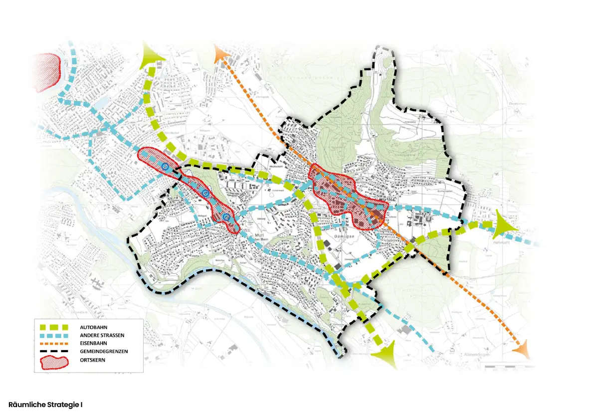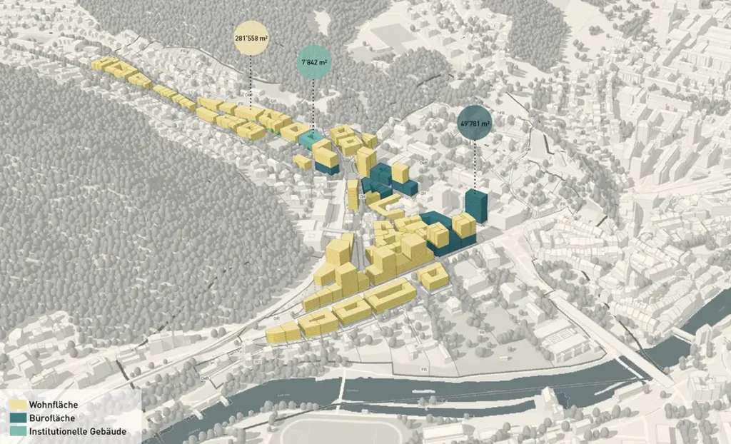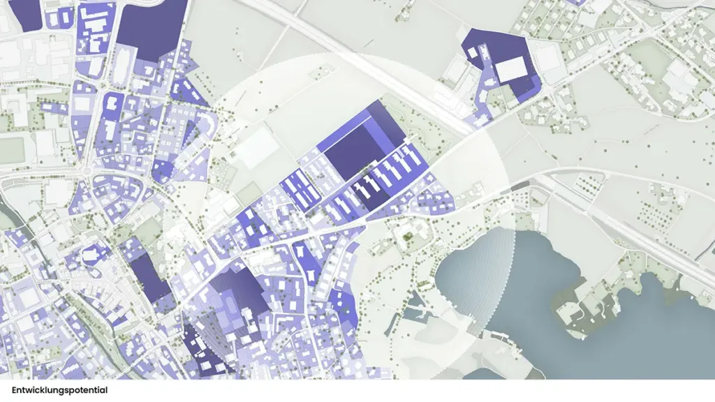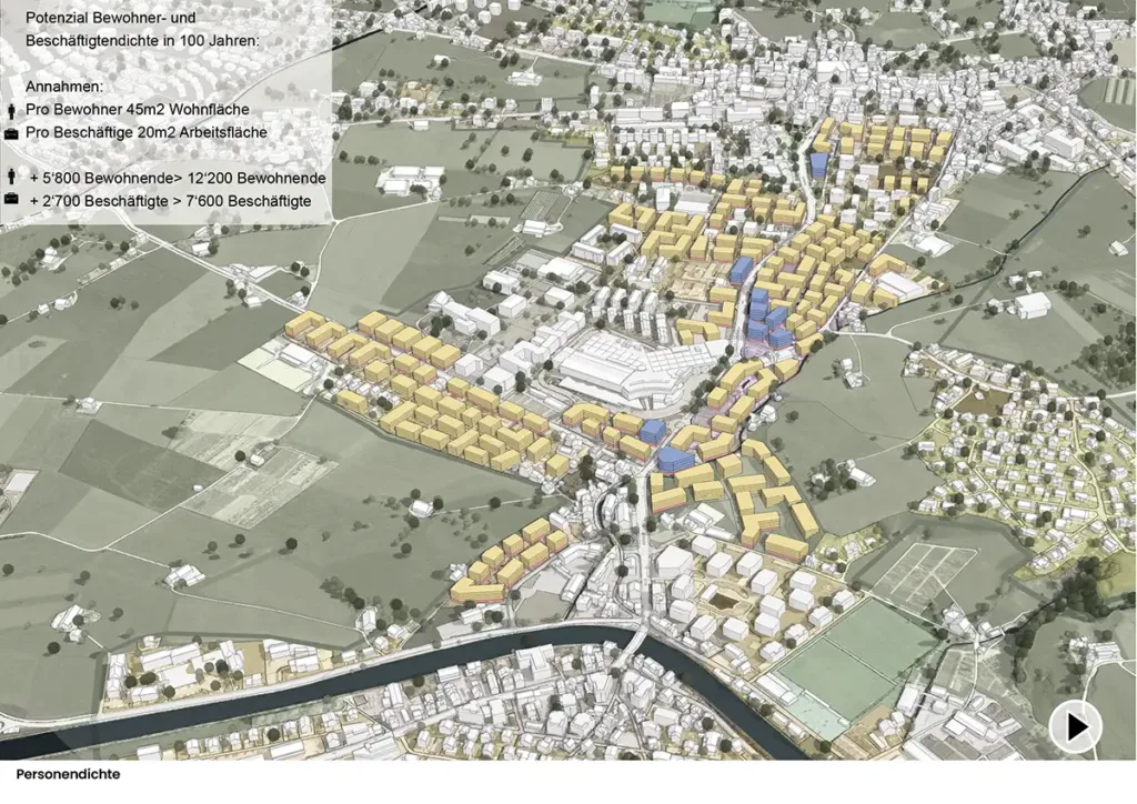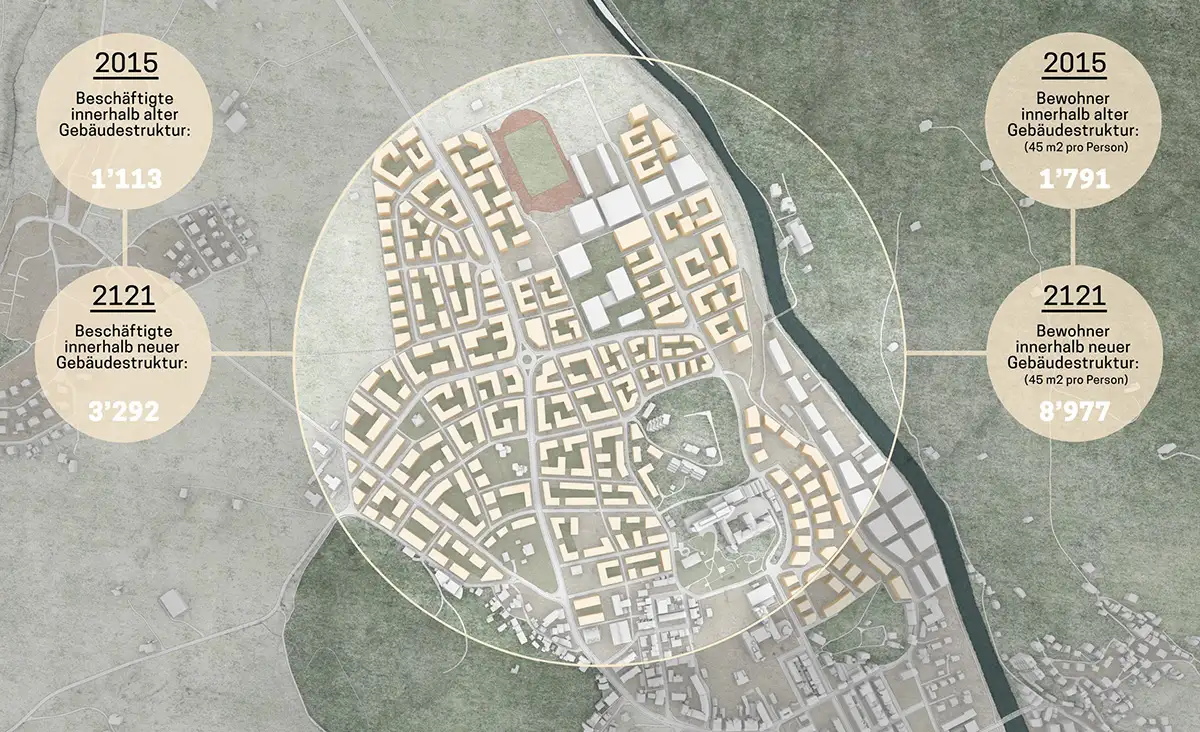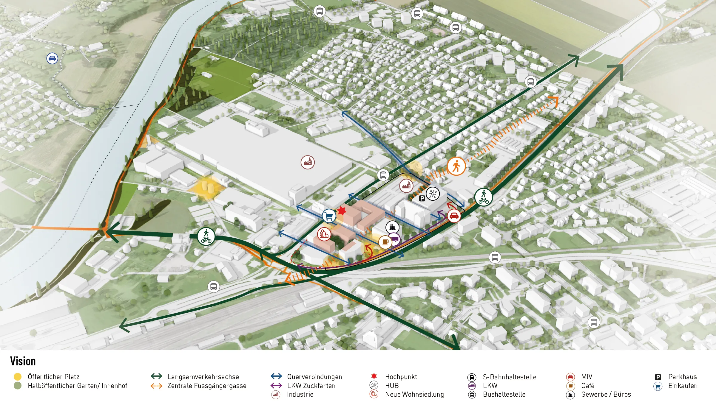 Vision Vision, Verdichtungsstrategie, städtebauliche Vision mit Freiraum- und Erschliessungskonzept, Umzonungs- und Nutzungsstrategie, Entwicklungsstrategie mit konkreten Anreizsystemen für Wohnen- und Industrie 4.0