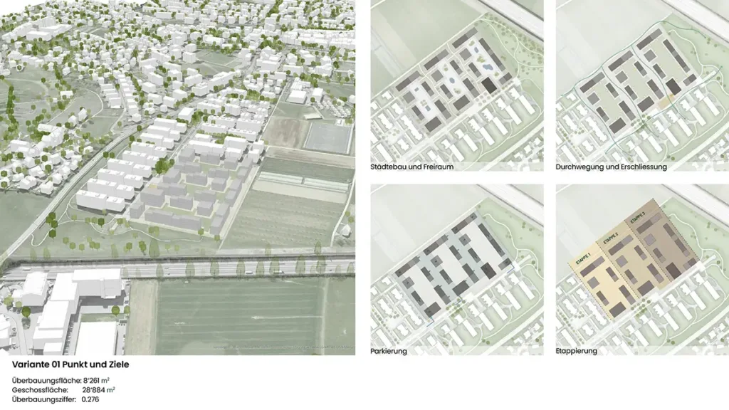 Umsetzung Vision im dreidimensionalen GIS-Modell, Etappierung, Urban Rules, Anreizsysteme, Grundlagen für den städtebaulichen Studienauftrag