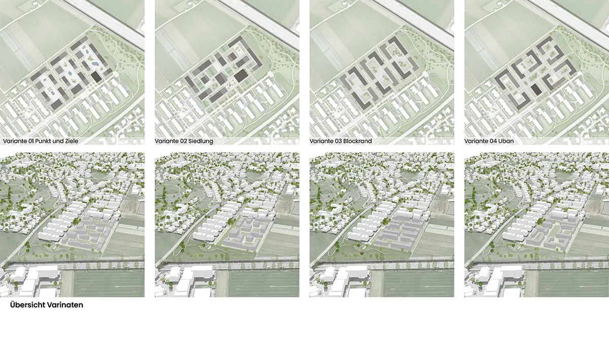 Die Projektgruppe hat sich darüber hinaus entschieden, eine umfassende städtebauliche und freiraumplanerische Vision zu entwickeln. Dieses Zukunftsbild sieht eine Hofbebauungsstruktur vor, die durch ein neues, entwickeltes Straßen- und Wegenetz von allen Seiten erschlossen wird. Von Norden nach Süden wird die Bebauungsstruktur zunehmend aufgelockert, um einen harmonischen Übergang zu den bestehenden kleinteiligeren Wohnstrukturen im Süden zu schaffen, die in ihrer Form erhalten bleiben sollen. Diese gestalterische Auflockerung wird durch eine sukzessive Reduktion der Gebäudegeschosszahlen unterstützt.