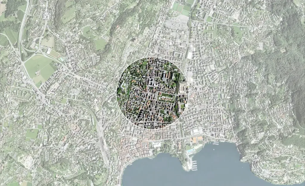 Vision Territoriale Vision, Entwicklungs- und Verdichtungsstrategie im Sinne der 10-Minuten Stadt, Freiraumentwicklung, Mobilitätskonzept, städtebauliches Konzept, Vision Filmstadt Locarno